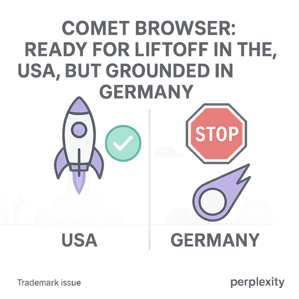 Perplexity AI darf den Namen „Comet” für seinen Browser in den USA aktuell zwar unter bestimmten Auflagen nutzen. In Deutschland und vermutlich auch im restlichen Europa ist die Nutzung jedoch noch untersagt.
